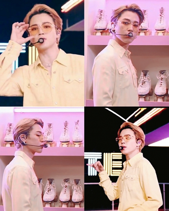이 날 지민은 연한 파스텔 색감의 노란색 셔츠에 부츠컷 바지 초록색 벨트를 더한 완벽한 디스코룩에 올백 스타일의 헤어와 커다란 오버사이즈의 선글라스를 낀 매력적인 모습으로 역동적이면서 정확한 디스코 안무를 선보였다.