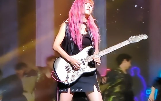추석 연휴 방송됐던 '나훈아 콘서트'에 참여한 핑크 헤어 스타일의 여성 기타리스트가 다시금 주목을 받고 있다. 이 기타리스트는 바로 밴드 빈시트 멤버 송지아였다.
