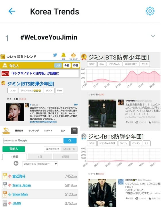 무대 후 중국 웨이보(Weibo)에 멤버 중 가장 먼저 트렌딩 된 지민은 일본 트위터 경향 분석 사이트 트위플(Twipple) 1위, 츠이란의 셀럽 일일 차트에서 멤버 중 가장 높은 순위인 4위, 일본 야후(Yahoo)에서도 멤버 중 유일하게 순위에 오르고, 전 세계 및 미국, 영국 구글(Google)에서 시간에 따른 관심도가 100%에 도달해 화제성을 입증했다.