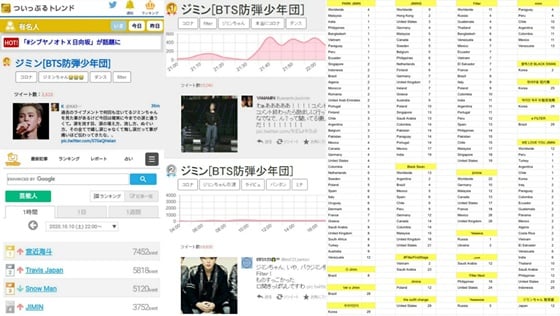 또 해시태그 #FilterFirstStage, #WeLoveYouJimin을 비롯해 Park Jimin, jimins, Filter, Black Swan, 우리지민 등 무려 총 22개의 키워드가 트렌딩 됐으며 그 중 전세계 6개, 미국 8개, 한국 5개의 키워드가 실시간 트렌드를 장악했다.