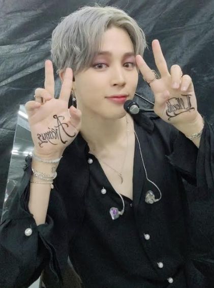 특히 양손으로 브이 포즈를 한 지민의 손바닥에 쓰인 글자가 팬들의 궁금증을 자아내며 시선을 사로잡았다.