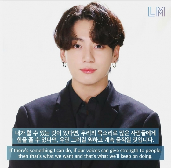 방탄소년단(BTS) 정국이 희망을 담은 메시지를 전세계에 전했다.