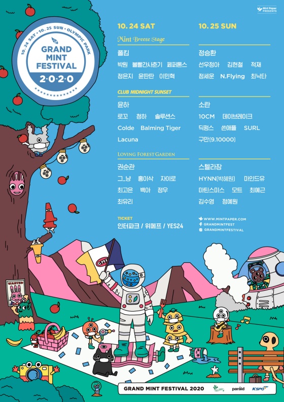 먼저 올해 첫 대면 페스티벌이 될 '그랜드 민트 페스티벌 2020'(GMF 2020)이 24~25일 열린다. 올해 코로나19로 인해 모든 음악 페스티벌이 개최되지 못한 가운데, 유일하게 정상 개최를 한 다는 점에서 주목받고 있다. 온오프라인 동시 진행되는 이번 GMF 2020은 44팀의 뮤지션이 출연한다. 다만 장소를 올림픽공원이 아닌 일산 킨텍스로 변경, 자유롭게 관람이 가능했던 기존 피크닉존 형식 대신 좌석제로 운영이 된다.