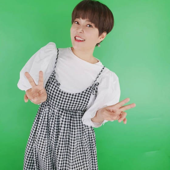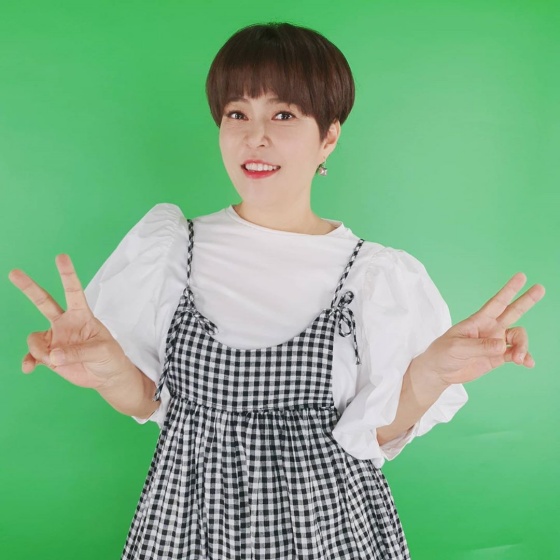 공개된 사진 속 조혜련은 한 영어 교육 프로그램을 위해 카메라 앞에 선 모습. 귀여운 숏컷 헤어와 깅엄체크 패턴 원피스 스타일링이 소녀 같은 분위기를 자아낸다. 양손으로 브이자를 그린 포즈와 밝은 미소도 귀여운 매력을 더한다.