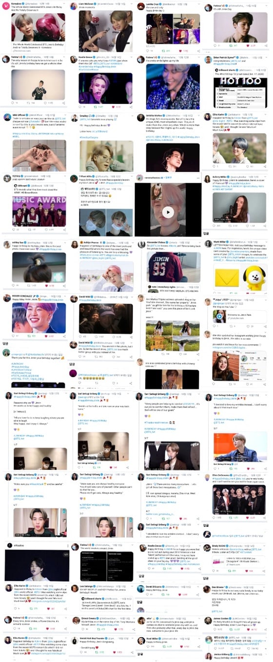 필리핀 배우 베아 비넨(Bea Binene)은 한국어로 생일 축하 메시지를 전했으며, 미국 10대 스타 오브리 밀러(Aubrey Miller)는 지민의 첫 자작곡이자 사운드클라우드 내 K팝 역사를 써내려 가고 있는 '약속'의 한국어 커버 영상을 전하는 등 한글을 사용하는 훈훈한 모습을 보였다.