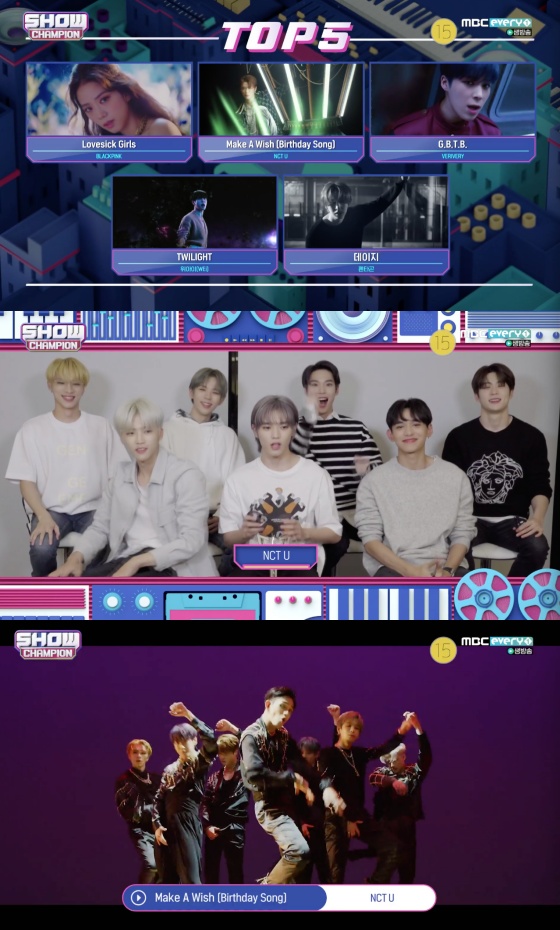 '쇼! 챔피언'에서 NCT U가 'Make A Wish'로 1위를 거머쥐었다. 위아이와 펜타곤, 베리베리는 컴백했다.