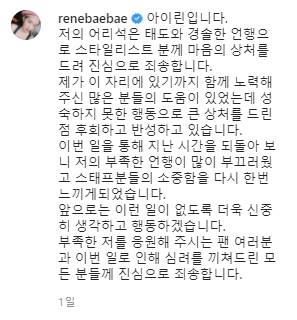 일단 아이린은 공식적으로 사과를 했고, 당장에 잡혔던 레드벨벳의 24일 '2020 한국문화축제' 팬미팅 라이브 행사 스케줄도 취소했다. 자신의 문제를 인지한 이에게 막무가내의 비난보다는 '명확한 지적'이 필요해 보인다. A씨의 폭로 취지도 '단순 비난'은 아니었을 테다.