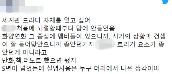 무엇보다 화양연화 세계관은 앞서 웹툰과 소설로도 제작된 바 있는데, 당시에도 일부 팬들 사이에서는 같은 이유로 반발이 일었다. 그럼에도 빅히트는 아랑곳하지 않고 또 같은 스토리에 멤버 이름을 사용하며 드라마 제작을 결정했다. 때문에 빅히트의 이런 태도를 두고 팬들은 팬과 아티스트가 우선이 아닌, 세계관을 활용해 또 다른 수익 창출에만 혈안이 돼 있다는 시선을 보내고 있다.
