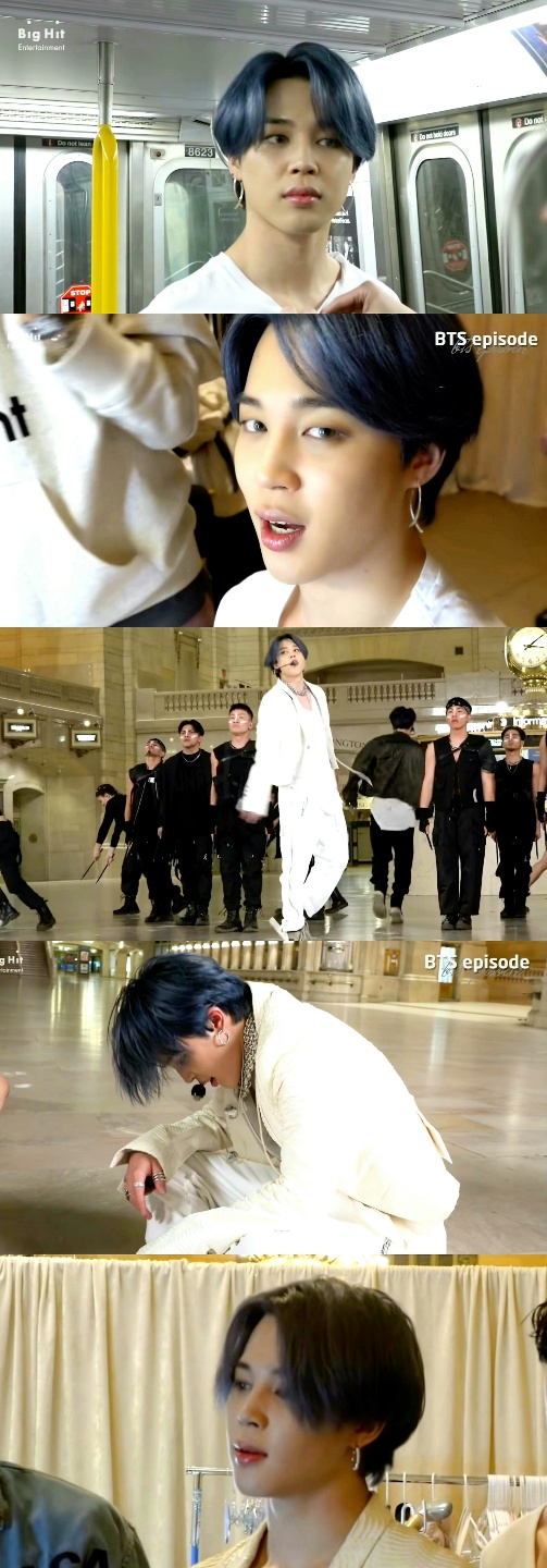 방탄소년단(BTS) 지민이 카리스마 넘치는 댄스 브레이크로 뉴욕 그랜드 센트럴 터미널을 뜨겁게 달궜다.
