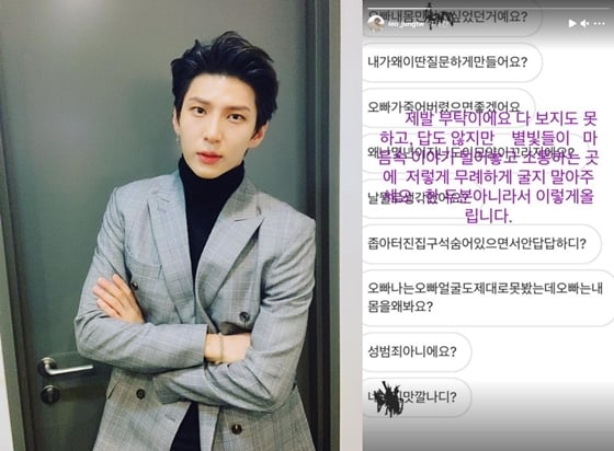 그룹 빅스 멤버 레오가 악의적 메시지에 심각한 고통을 호소했다.