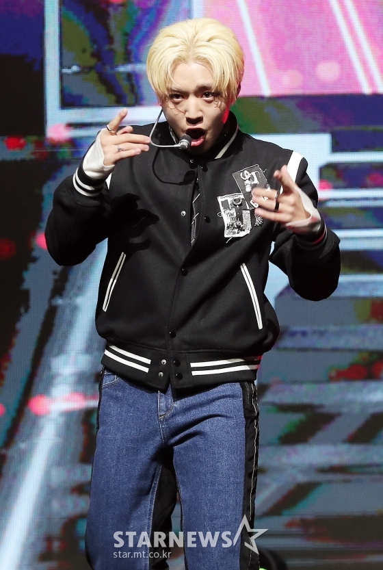 박지훈은 4일 오후 서울 용산구 블루스퀘어 아이마켓홀에서 첫 번째 정규앨범 'MESSAGE' 발매 기념 쇼케이스에서 신곡 뮤직비디오를 "이미지 변신을 시도하는 기회가 됐다"고 소개했다.