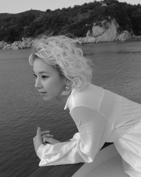 채영은 12일 트와이스의 공식 인스타그램에 여러 장의 사진을 게재했다. 사진 속 채영은 난간에 기대 바다를 바라보고 있는 모습이다.