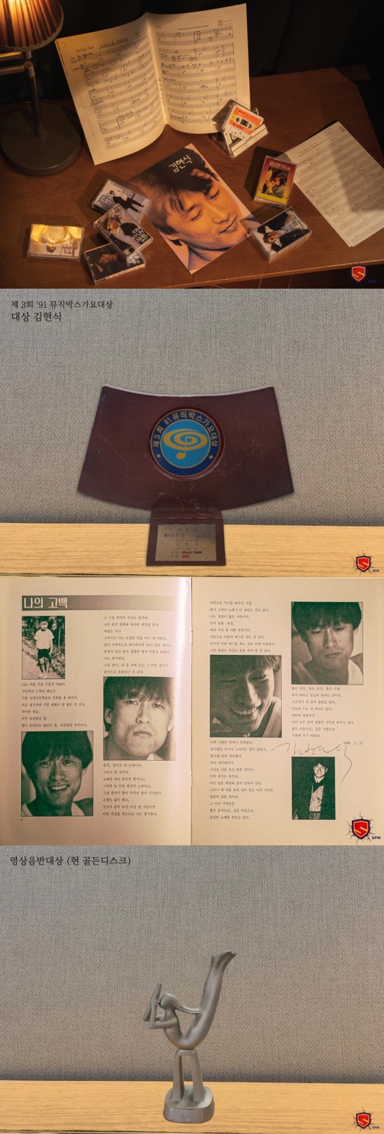공개된 사진 속에는 故 김현식의 정규 및 베스트 앨범 테이프와 '기다리겠소' '바람인 줄 알았는데' 악보, 뮤직박스 대상 트로피, 골든디스크 대상 트로피, 고인의 활동 모습이 담긴 사진 등 故 김현식의 업적을 한 눈에 볼 수 있는 유품들이 생생하게 담겼다.