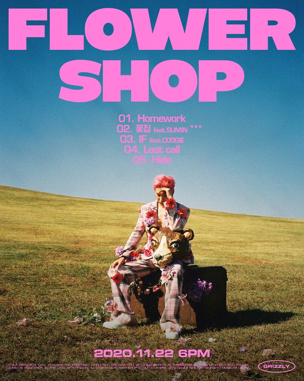 그리즐리는 지난 17일 공식 소셜미디어를 통해 새 미니앨범 '꽃zip(꽃집)' 트랙리스트 이미지를 게재하며 컴백을 공식화했다.