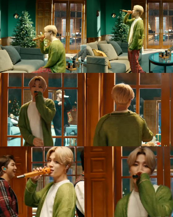 '문'을 모티브로 촬영된 'Life Goes On' 영상 속에서 편안한 파자마 위에 녹색 가디건을 입은 지민은 매력적인 보이스로 중저음부터 고음까지 자유 자제로 소화, 크리스마스 선물 같은 무대를 미리 선사했다.