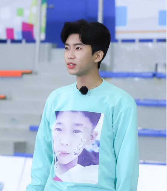 가수 임영웅이 어린 시절 사진이 프린팅된 옷으로 눈길을 끌었다.