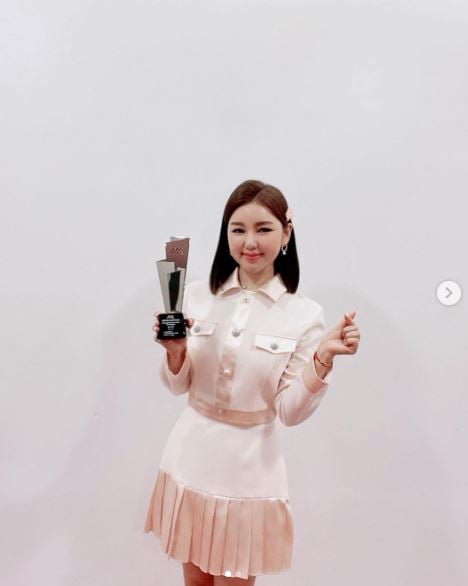 송가인은 지난 28일 공식 인스타그램을 통해 2020 AAA 수상 인증 사진을 공개했다.