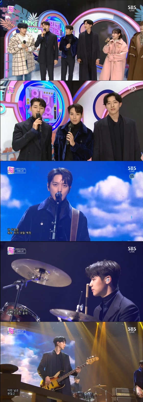 무대에 앞서 씨엔블루는 "너무 오랜만이다. 3년 8개월 만에 나왔는데 마지막 활동이라 아쉽다. 팬들 만날 생각에 설렌다"라고 컴백 소감을 밝혔다. 씨엔블루는 새 앨범에 대해 "저희가 30대에 접어들었다. 성숙한 느낌을 보여줄 수 있다. 타이틀곡 '과거 현재 미래'는 과거에 만났던 인연이 현재와 미래도 함께한다는 멋진 곡이다"라고 소개했다. 씨엔블루는 '과거 현재 미래'에 맞춰 컴백 무대를 선보였다. 더욱 성숙해진 씨엔블루의 모습이 시선을 끌었다.