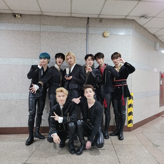 29일 스트레이 키즈 공식 트위터에는 "Wow 스트레이 키즈의 '神 메뉴' 베스트 뮤직비디오 수상을 축하합니다"라는 글과 함께 두 장의 사진이 게재됐다.