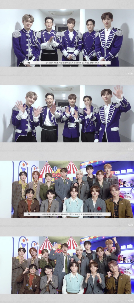 소속사 플레디스 엔터테인먼트는 2일 오후 공식 유튜브 및 SNS 채널을 통해 뉴이스트와 세븐틴의 2021학년도 대학수학능력시험 응원 영상을 공개했다.