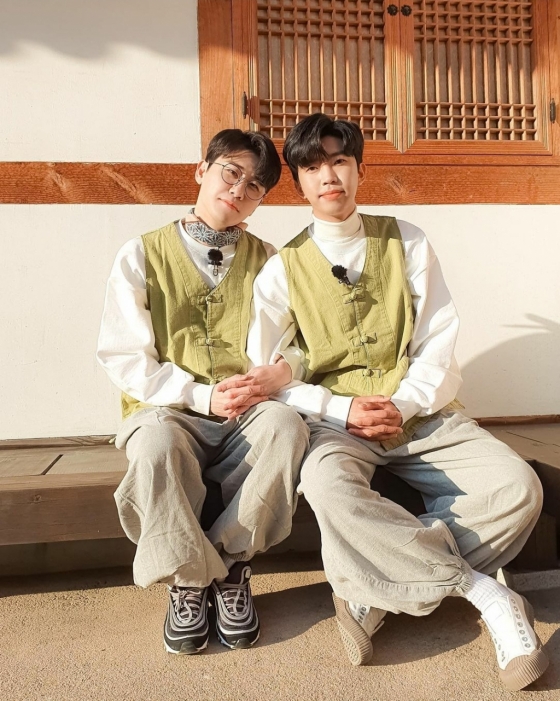 사진 속 임영웅과 영탁은 서로 팔짱을 낀 채 카메라를 보고 있다. 두 사람은 꼭 붙어 앉으며 서로에 대한 친밀함을 보였다. 따뜻한 햇살 아래 두 사람의 훈훈한 비주얼이 한층 돋보인다.