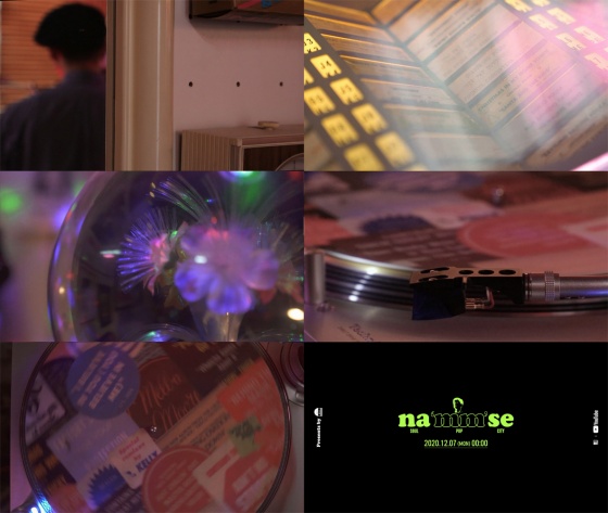 영상 말미에는 턴테이블 매트가 회전하는 장면이 나오면서 'na 'mm’ se'(나음세), 'SOUL'(소울), 'POP'(팝), 'CITY'(시티) 등 감각적인 타이포를 비롯해 나얼X유튜브 로고, '2020.12.07(Mon), 00:00' 타임라인이 표시돼 궁금증을 자아낸다.