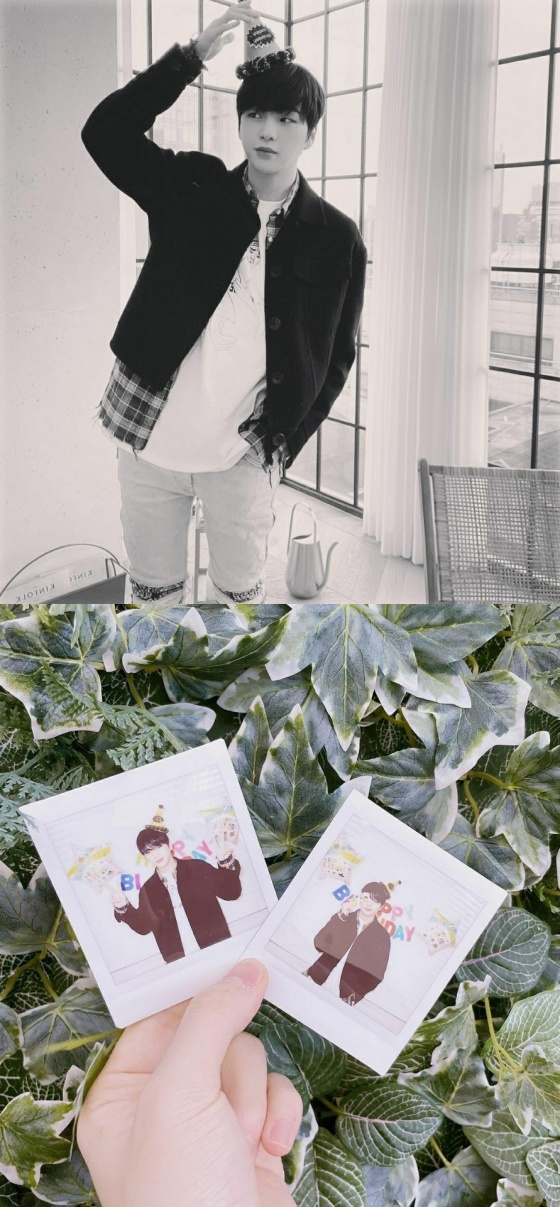 사진 속 강다니엘은 생일 고깔모자를 머리에 얹은 채 포즈를 취하고 있다. 강다니엘의 작은 얼굴과 넓은 어깨는 상남자 포스를 자아낸다. 강다니엘의 대형견 같은 매력이 돋보인다.