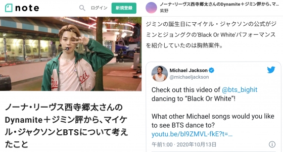 그러면서 마이클 잭슨의 조카 타지 잭슨이 '다이너마이트' 뮤직 비디오와 지민의 유사성에 대해 자세히 설명한 글을 인용해 주목했다.