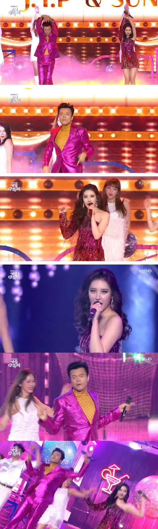 박진영과 선미는 보라색 의상을 맞춰입고 무대에 올랐다. 이들은 원더걸스의 노래 '노바디'를 시작으로 선미의 노래 '보라빛밤', 박진영의 '그녀는 예뻤다', '허니' 그리고 두 사람이 함께 부른 '웬 위 디스코'까지 함께 부르며 흥겨운 레트로 무대를 꾸몄다. 15년간 함께 한 두 사람의 남다른 케미가 돋보이는 무대였다.