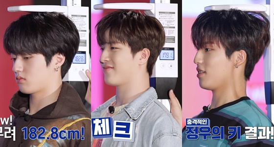 이내 결과는 “180cm”로 나왔고 그의 예상 적중 결과에 멤버들은 열렬히 환호하며 ‘180 달성’ 축하 박수를 보냈다. 뿌듯한 결과에 박정우는 “20살 때까지 꼭 183cm를 찍도록 하겠다”라고 포부를 밝혔다.