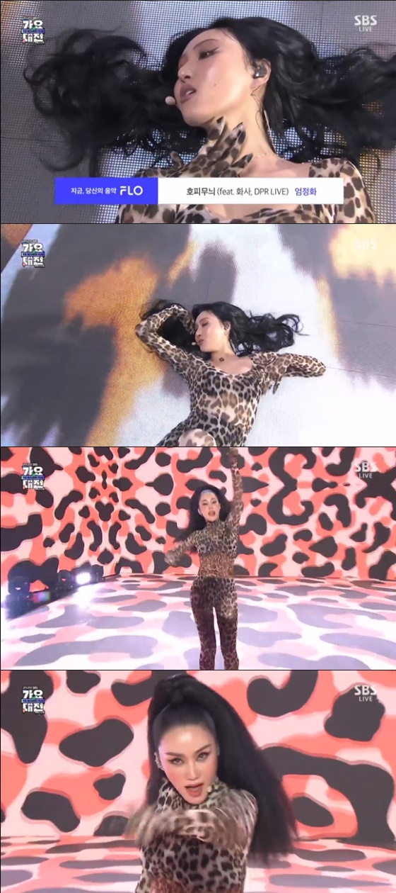 엄정화는 화사와 함께 '호피무늬'에 맞춰 카리스마를 자랑했다. 곡명과 같이 호피무늬로 도배된 무대와 의상으로 시선을 끌었다. 엄정화의 아우라는 여전했다.