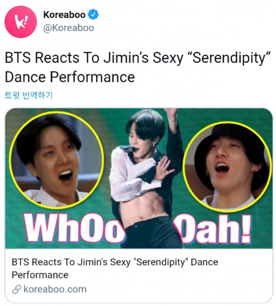 미국 K팝 연예매체 코리아부(Koreaboo)는 지난 21일 "지민은 수백만 명의 팬을 보유하고 있지만, 지민의 첫 번째 팬보이는 멤버들"이라며 '세렌디피티' 안무를 향한 멤버들의 뜨거운 반응을 보도했다.