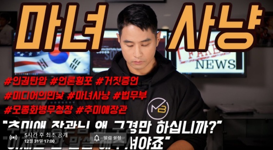 썸네일에는 '마녀사냥' '인권탄압' '언론횡포' '거짓증언' '미디어의민낯' '마녀사냥' '법무부' '모종화병무청장' '추미애장관'이라는 해시태그와 함께 "추미애 장관님 왜 구경만 하십니까?" "이제는 한 말씀 해주셔야죠"라는 글들이 적혀있다.