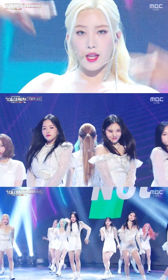 '2020 MBC 가요대제전'에서 걸그룹 이달의 소녀가 꽃으로 채워진 컴백 무대에서 올 화이트 룩을 맞춰 입고 상큼한 매력을 선보였다.