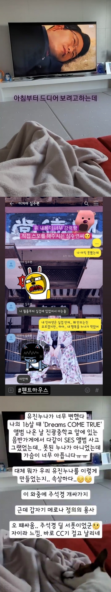 또한 김희철은 "유진누나가 너무 변했다. 나의 16살 때 'Dreams COME TRUE' 앨범 나온 날 진광중학교 앞에 있는 음반가게에서 다 같이 SES 앨범 사고 그랬었는데..못된 누나가 아니었는데 가슴이 너무 아픕니다ㅠㅠ"라고 적었다.