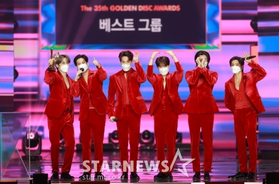 연예K-POP몬스타엑스 '베스트그룹상 받았어요'[★포토]발행 : 2021.01.09 ・ 20:21이동훈 기자그룹 몬스타엑스가 9일 오후 경기도 일산 킨텍스에서 비대면으로 진행되는 '제35회 골든디스크어워즈 with 큐라프록스' 디지털 음원 부문 시상식에서 베스트 그룹상을 수상한 뒤 소감을 밝히고 있다. /사진제공=골든디스크어워즈사무국<저작권자 © 스타뉴스, 무단전재 및 재배포 금지>골든디스크추천 기사이동훈 기자기자홈좋아요 연예-K-POP의 인기 급상승 뉴스연예-K-POP의 최신 뉴스