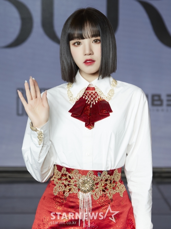 걸그룹 (여자)아이들 우기가 11일 오후 온라인 생중계로 진행된 네 번째 미니앨범 ‘I burn'(아이 번) 발매 기념 쇼케이스에 참석해 포즈를 취하고 있다. /사진제공= 큐브엔터테인먼트