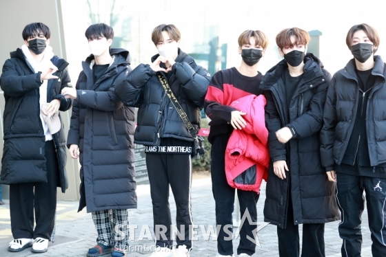 그룹 위아이 장대현, 김동한, 유용하, 김요한, 강석화, 김준서가 16일 오후 경디고 고양시 빛마루 방송센터에서 진해된 '2020APAN' 사전 녹화를 마치고 나서고 있다.