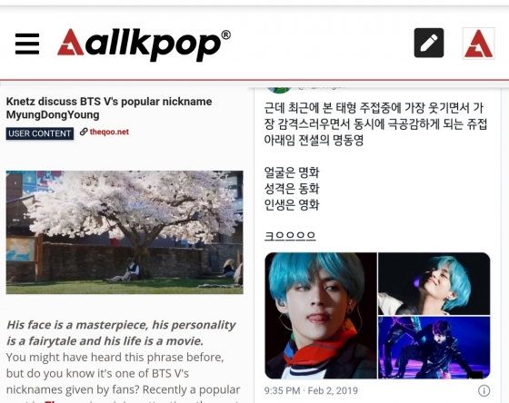 방탄소년단(BTS) 뷔의 가장 유명한 닉네임 중 하나인 '명동영'의 비하인드 스토리가 화제에 올랐다.