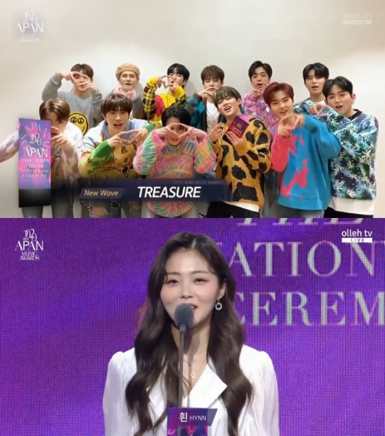 트레저와 HYNN은 24일 오후 열린 '2020 APAN MUSIC AWARDS'에서 신인상에 해당하는 뉴웨이브상을 수상했다.