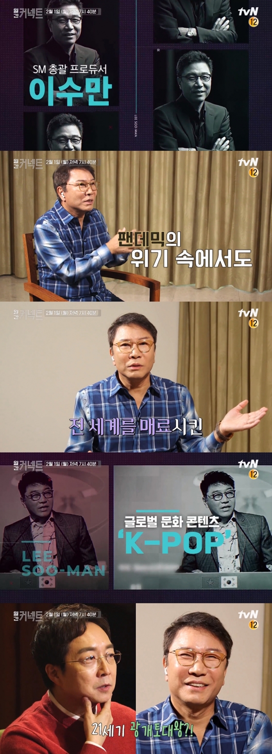 이수만 SM엔터테인먼트 총괄 프로듀서가 tvN '월간 커넥트'에 출연, K팝 세계화를 이끈 글로벌 리더로서 미래 비전을 제시한다.