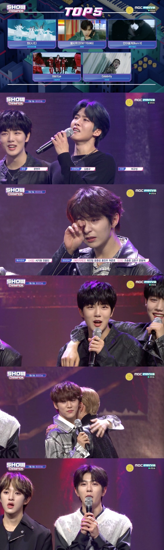 그룹 골든차일드가 '쇼! 챔피언'에서 2월 첫째 주 1위에 오르며 눈물의 소감을 전했다.