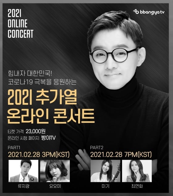 빵야 티비(BBANGYA TV) 측은 포크송 가수 추가열과 함께 오는 28일 오후 3시와 7시 2회로 '힘내자 대한민국! 코로나19 극복을 응원'하는 2021 추가열 온라인 콘서트를 진행한다고 10일 밝혔다.