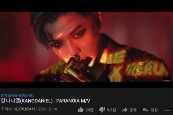 가수 강다니엘의 '파라노이아'(PARANOIA) 뮤직비디오가 49시간 만에 1천만뷰를 돌파했다.