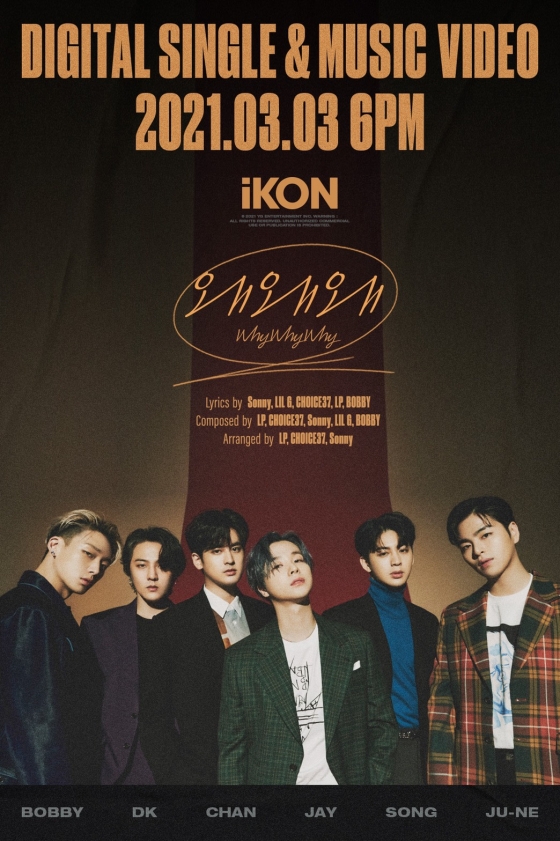 아이콘의 '왜왜왜 (Why Why Why)’ 음원과 뮤직비디오는 오는 3월 3일 오후 6시 발표된다. 약 1년 만에 신곡을 들고 완전체로 돌아오는 아이콘인 만큼 글로벌 팬들의 뜨거운 반응이 기대된다.