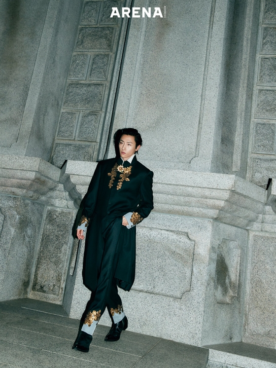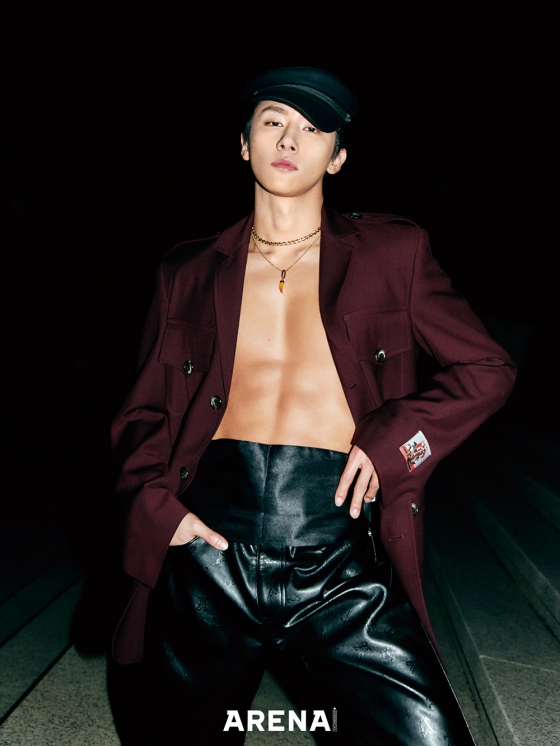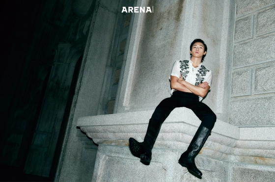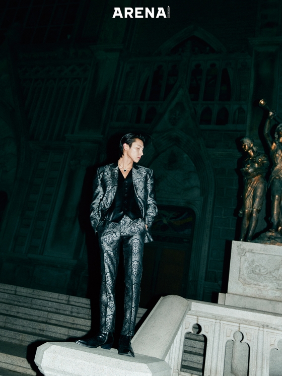아이엠은 22일 공개된 매거진 아레나 옴므 플러스 3월호 화보에서 어두운 밤, 고딕한 석재 건물과 조각을 배경으로 무심한 표정과 담백하면서도 대담한 포즈, 선명한 복근을 드러냈다.