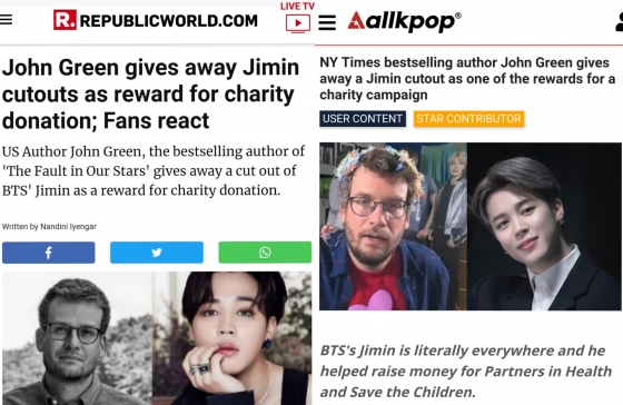 이 캠페인 참여자들에게 선물로 등장한 지민에 대해 북미 매체 ‘올케이팝'(allkpop)과 인도매체 ‘리퍼블릭 월드'(Republicworld)는 ‘방탄소년단 지민은 말 그대로 어디에나 있으며 ‘파트너 인 헬스 앤 세이브 더 칠드런'(Save The Children & Partners In Health)을 위한 모금을 도왔다’고 보도했다.