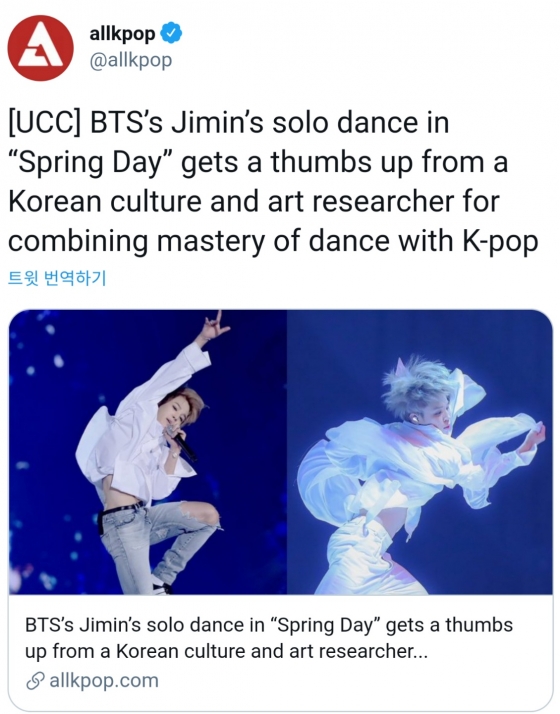 북미연예매체 올케이팝(allkpop)은 "'봄날' 솔로 댄스와 K팝 그리고 무용의 통달력을 겸비한 지민이 한국 문화 예술연구소 소장으로부터 찬사를 받았다"고 전했다.