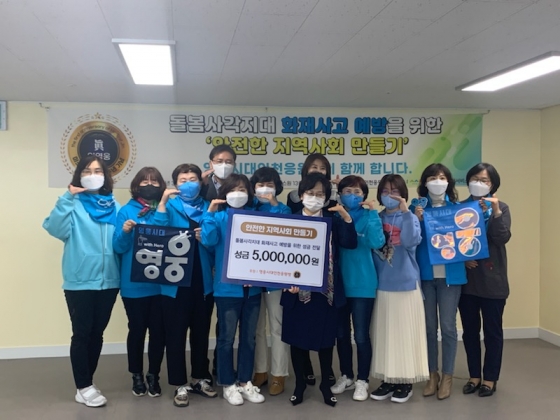 영웅시대 인천 응원방 회원들은 돌봄사각지대 화재사고 예방을 위한 '안전한 지역사회 만들기' 캠페인에 500만원을 기부했다.