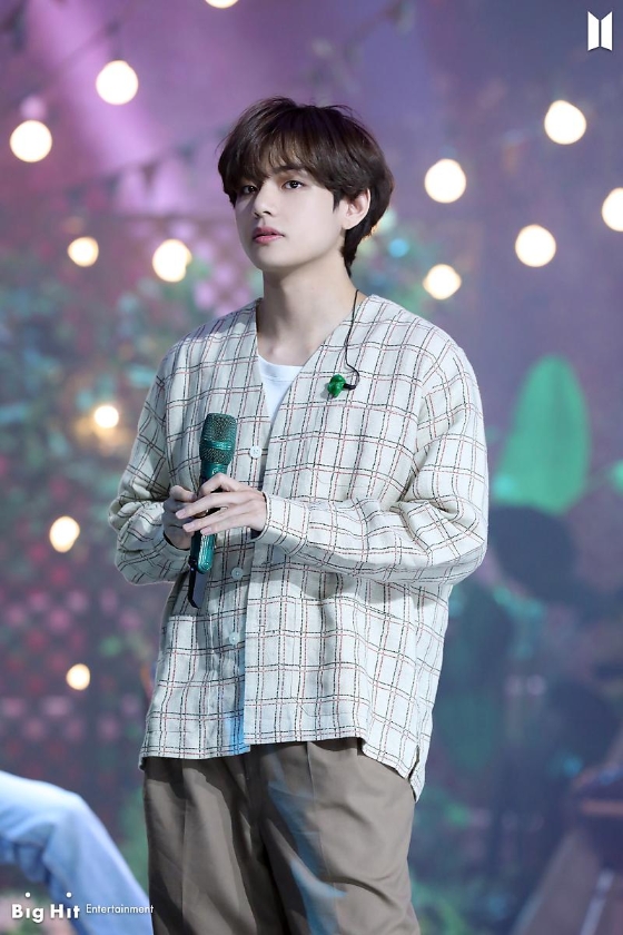편안한 곡 분위기에 걸맞는 베이지색의 의상을 입고 마이크를 손에 꼭 쥐고 있는 뷔는 무대 위에서 반짝이는 눈으로 어딘가를 응시하고 있다. 그려 놓은 듯한 수려한 이목구비와 풍성한 볼륨이 살아있는 헤어 스타일은 뷔의 인형같은 비주얼을 한층 더 살렸다.